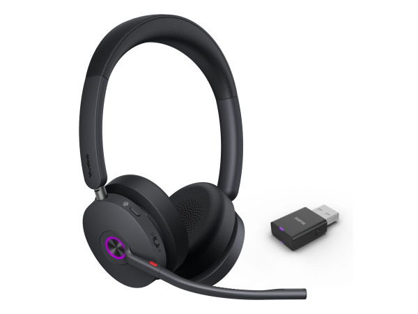 The supra-aural aka on-ear headset features Bluetooth/DECT wireless technology